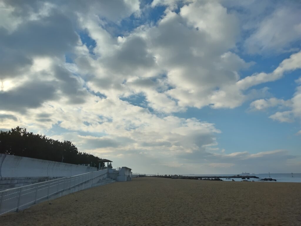 *写真は、芦屋浜の東岸の北から南へ向かった堤防風景。来週の日曜日、29日で、芦屋ビーチクリーンの本年の活動は終わります。