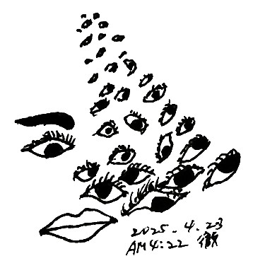 これから先があるのだろうか。いまや頭の中が未明にまで達したのだろうか。いきなり長芋とろろが崩れ出したんだ。オイ。あれは何だ。あの階段から流れ落ちて来るもの、紅と緑のまだら模様を描いて。とんでもない。まだ行きつく果てじゃ、なかったんだ。いっそ、ぐにゃりねちゃしておけば、よかったんだ、まだしも、長芋とろろでよかったんだ!