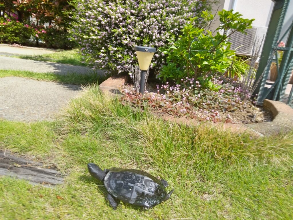 *写真は、我が家の門前で遊ぶ亀。春の陽気の中を。
