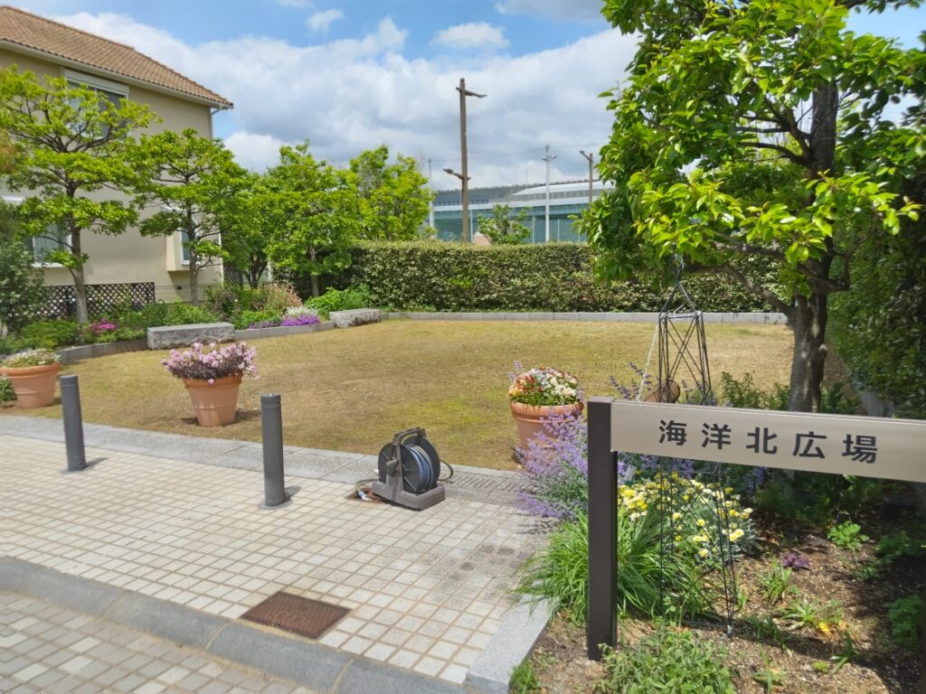 *写真は、私の住んでいる地区にある二つの小さな広場の内の一つ。海洋北広場と言う。今日はここの雑草を抜く作業を私を含めて五人の住民でやっていた。他の多くの参加者は住宅と接する歩道に生えた雑草などを抜く作業に従事していた。