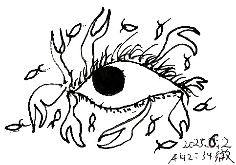 だから先程の話にちょっとだけ付け加えてオシマイにしておこう。つまり、なんだな、楕円形物体が這いずり回っているけれど、さらに無数の小さな蟹状生命体が体内から出てきた。いずれ全身をちょきちょきしてくるのかもしれない。