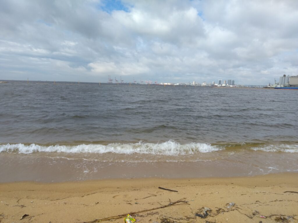 *写真は、雨あがりの芦屋浜。波が少し高く、浜にはたくさん漂着物が流れついていた。あしたから梅雨明けで真夏日がやって来る予報。今年最後の梅雨の芦屋浜だった。