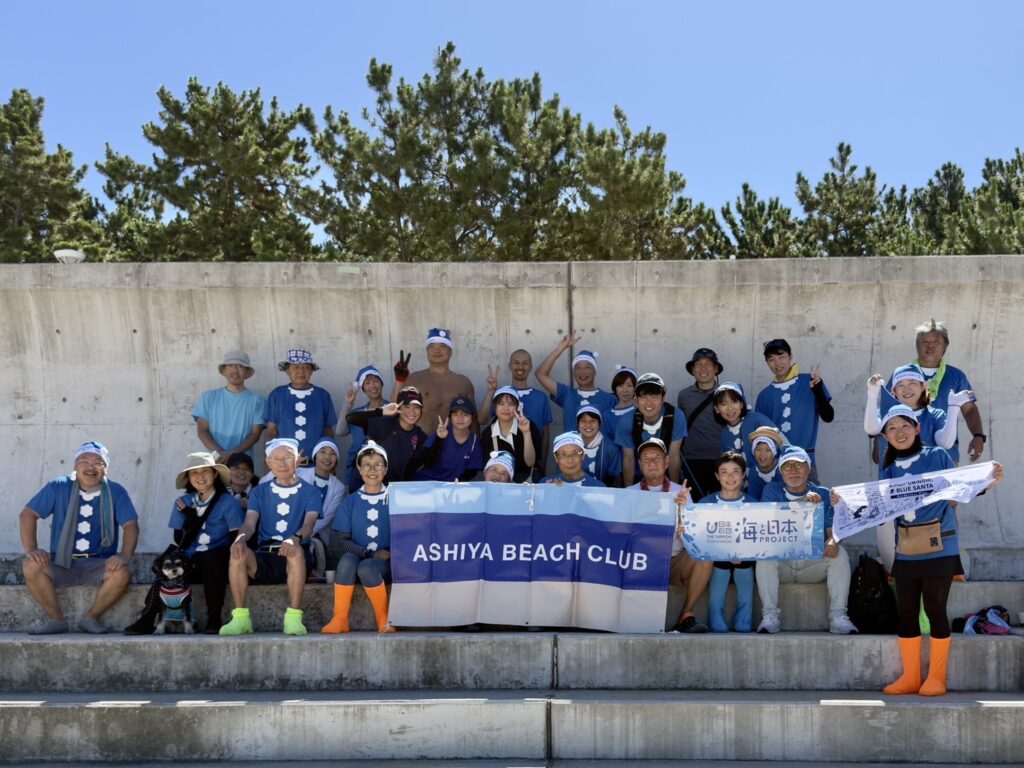 *写真は、本日参加した芦屋ビーチクラブのメンバーと県芦の生徒たち。ブルーサンタのコスチュームを着て。(リーダーの中村さんが撮影)