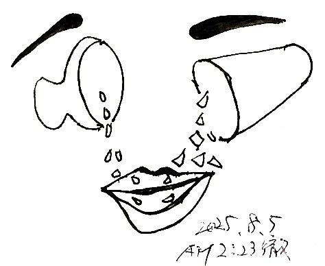 Mは困惑した。こんな不具合な状態なら、唇の間から内部が噴き出してくるのでは。バスや電車の中だったら。どうする? 鏡はしかめっ面をして見せた。