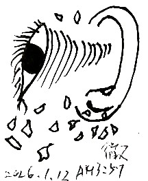 ゴミゴミした町を歩き回りながら、スマホを左耳に押し当て、電話をしていた。最初、仕事の話かと思っていたが、どうやらいつのまにか話題が変わっていて私生活の秘密めいた打ち明け話になっているのだった。そうやっておそらく半日以上、もう時間感覚はすっかり失われていたが、歩き続け、変転きわまりない会話がスマホの中を流れていた。先程まで女の声だと思っていたが、電話の相手は、一面識もない男だった。