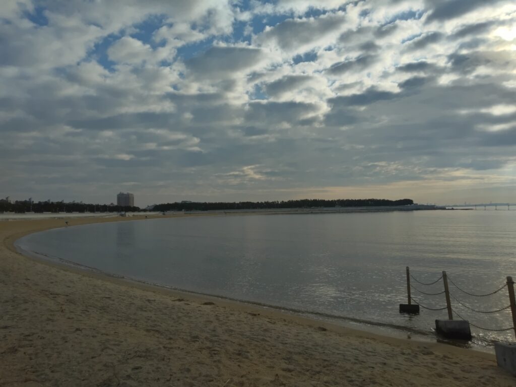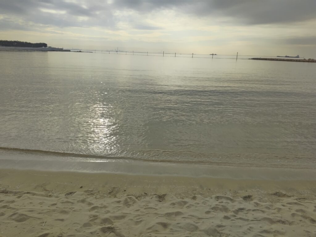 風もなく、おだやかな朝。暖かくなってきている。春がゆったり歩きながら芦屋浜まで近づいてくるのがわかる。もちろん、言うまでもなく、足音はしないけど。