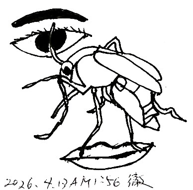 ボクは心配なまなざしで彼の顔を見つめていた。なぜって、彼の右頬に蚊が一匹とまっていたから。やにわに、彼の右手のひらがそれを叩きつぶした。